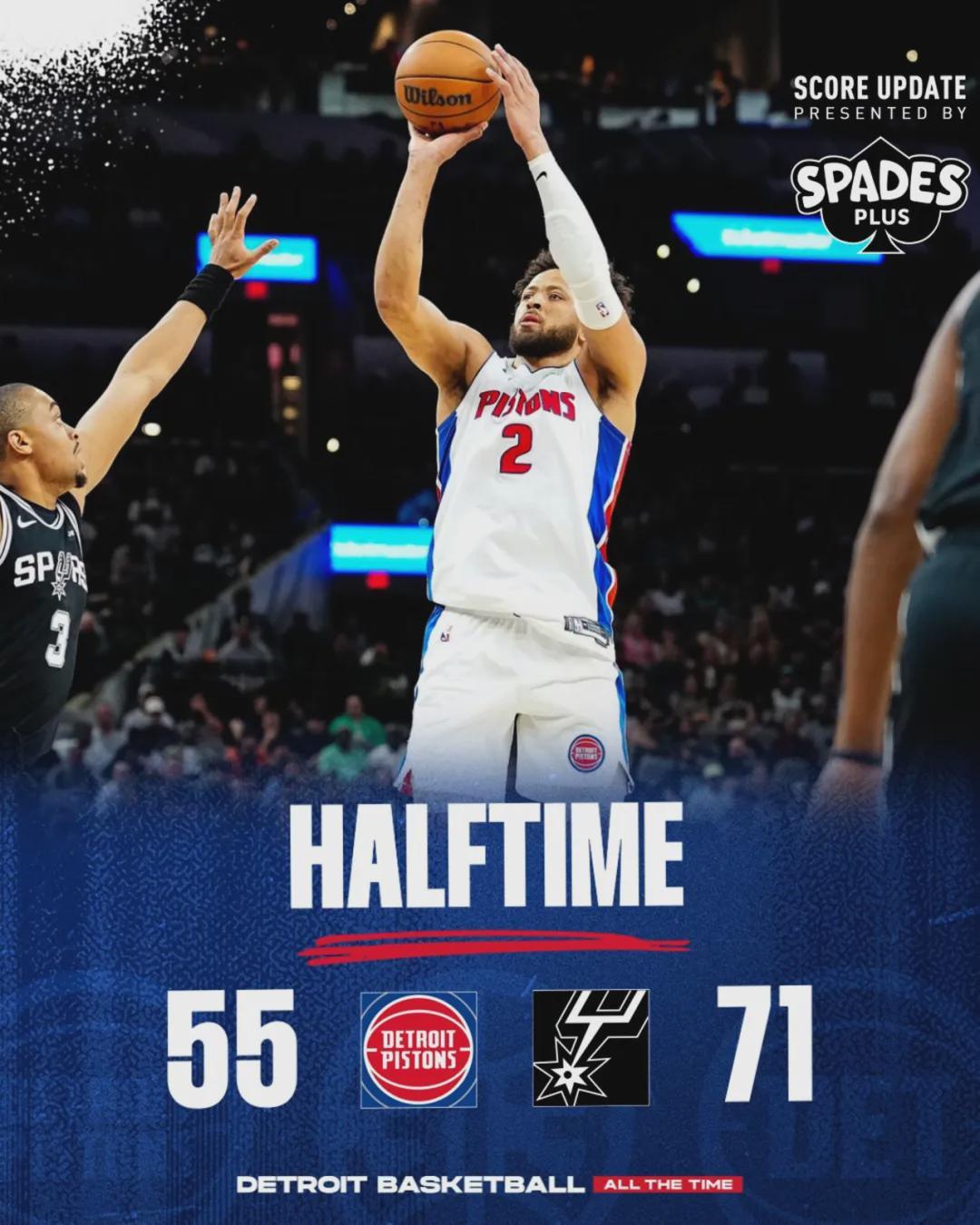 活塞状元坎宁安首发出战40分钟,投篮26中10,三分7中4,罚球2中2,拿到26分4板8助4失误5犯规。上半场坎宁安被锁死,16投5中仅得11分。活塞内线杰伦-杜伦饱受犯规困扰,今天只打了12分钟,7中3拿到7分7板2助5犯规。