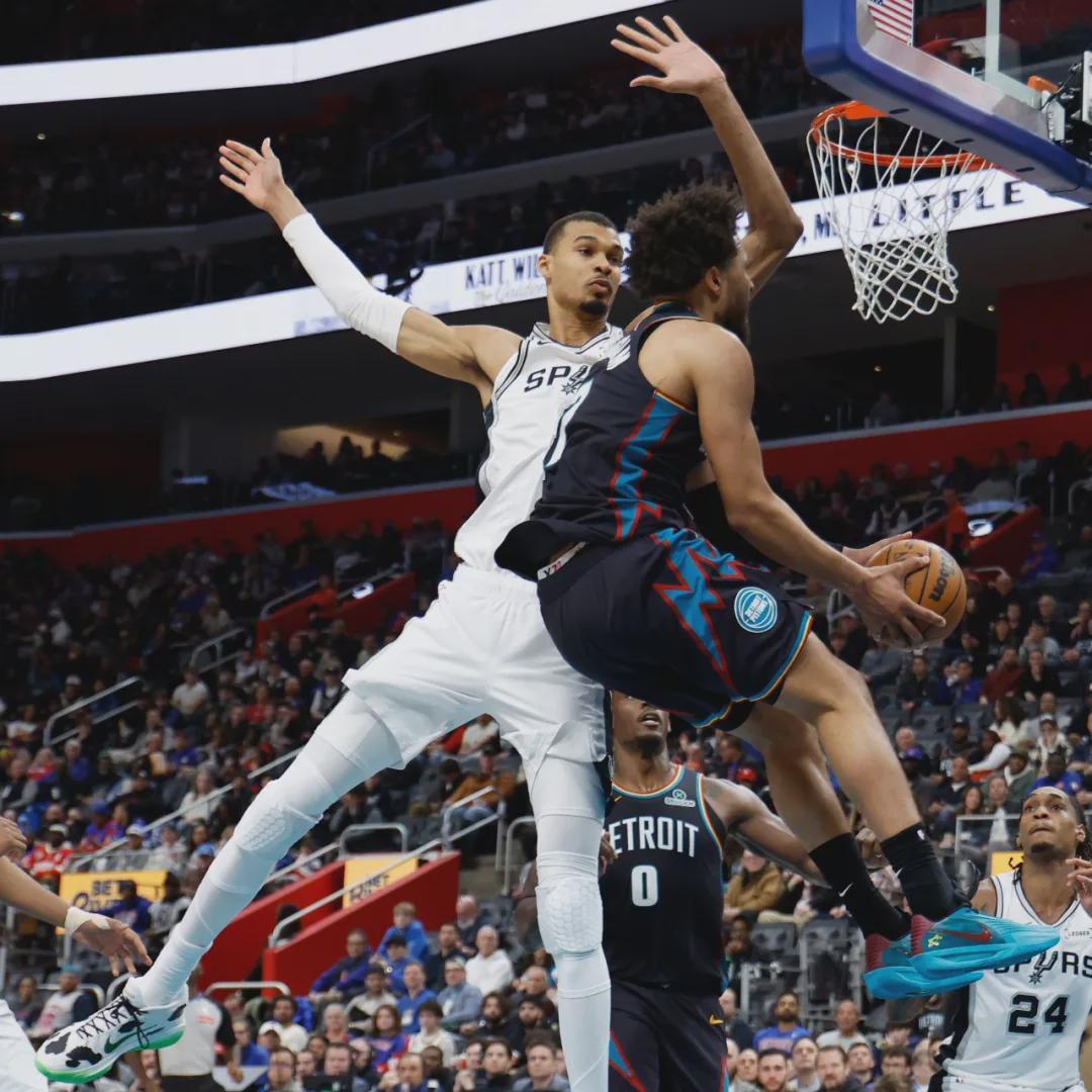 状元大战状元,本赛季马刺两战活塞,文班亚马一共送给坎宁安5记大帽。今天文班亚马再次打出炸裂数据:出战38分50秒,投篮24中12,三分10中4,罚球11中10,狂轰38分16篮板3助攻5盖帽,正负值+20并列全场最高。