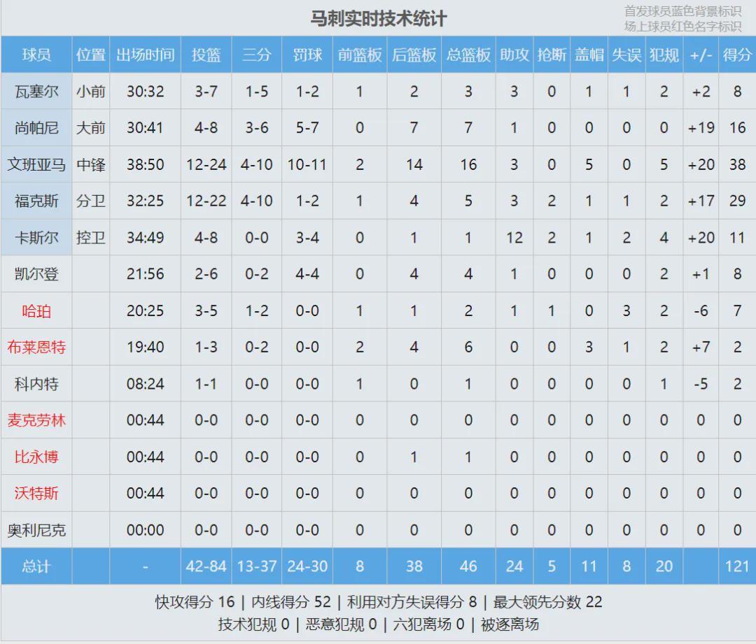 马刺有文班,但马刺不只是依靠文班。福克斯22投12中,三分10中4,罚球2中1,砍下29分5篮板3助攻2抢断1盖帽,正负值+17。卡斯尔出手不多,8投4中拿到11分12助攻2抢断1盖帽,正负值+20并列最高,上半场成功限制坎宁安。