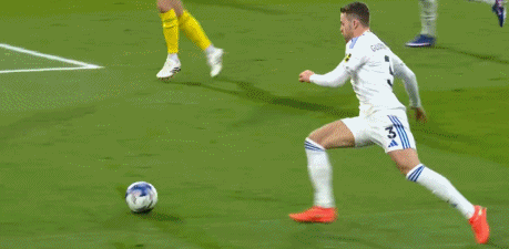 第27分钟,丹尼尔-詹姆斯横传,卢卡斯-恩梅加抢点倒地未判