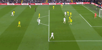 第27分钟,丹尼尔-詹姆斯横传,卢卡斯-恩梅加抢点倒地未判