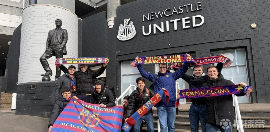 报道称,巴萨球迷前往纽卡斯尔支持弗里克的球队冲击欧冠八强,他们在圣詹姆斯公园球场外的博比-罗布森爵士与阿兰-希勒雕像前纷纷合影留念。