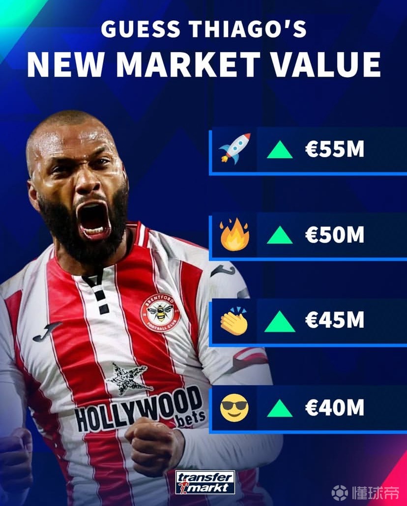 英超射手榜第2,德转预热伊戈尔-蒂亚戈身价:最高涨至5500万