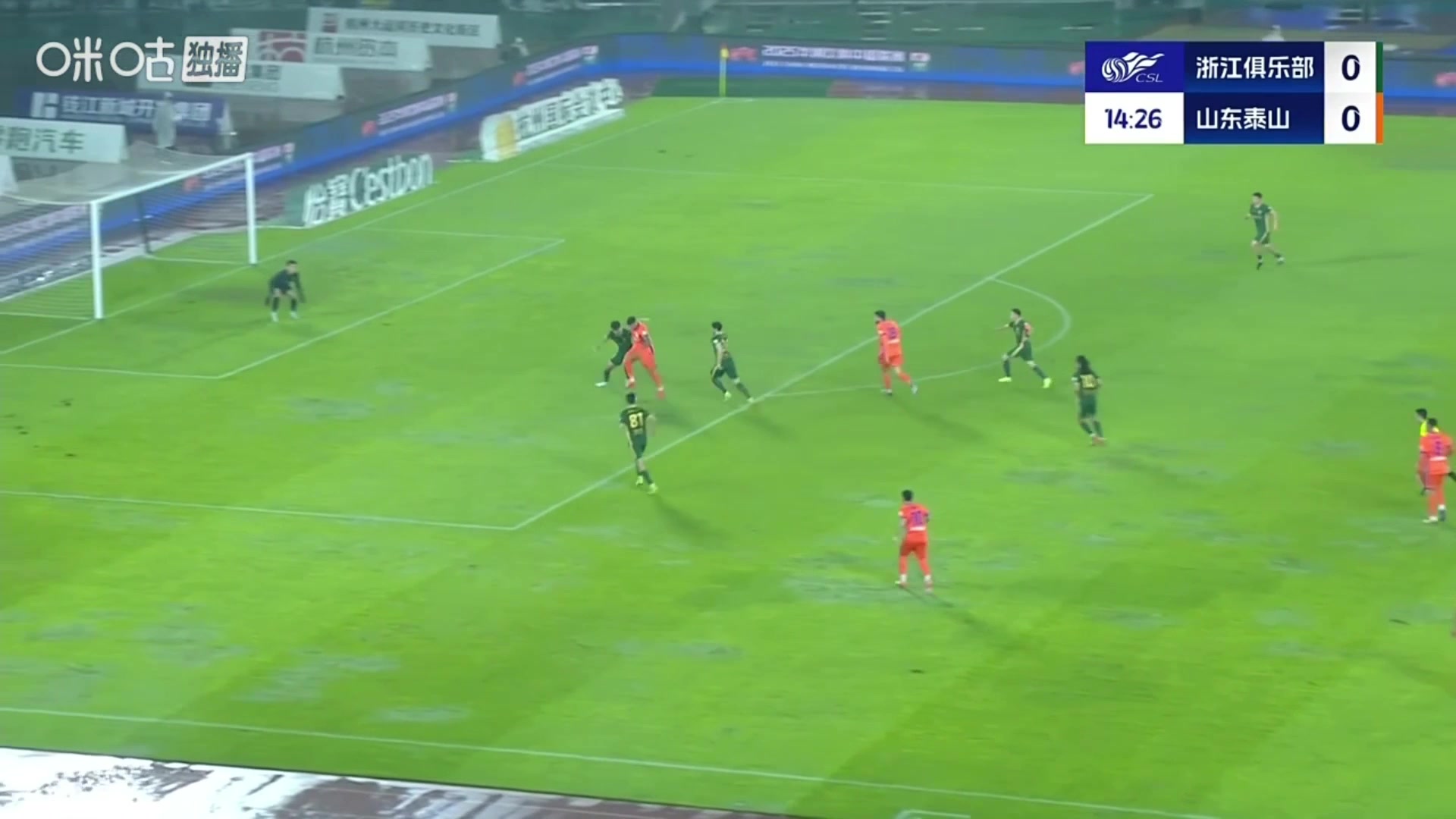 王大雷无可奈何奥乌苏转身小角度爆射破门浙江队反超比分