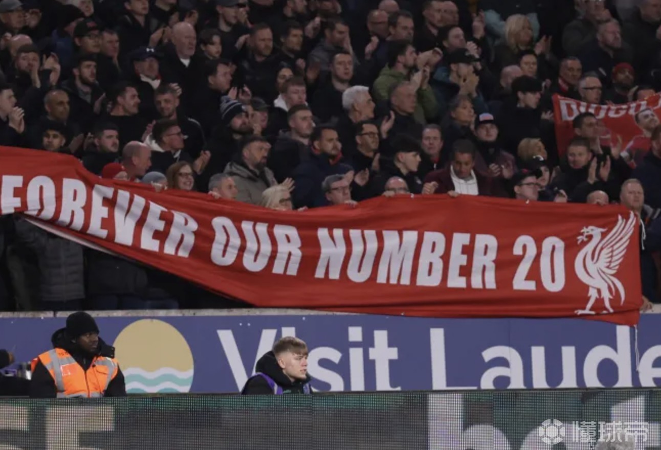 纪念若塔,狼队、红军球迷在比赛第18分钟和第20分钟发出呼声